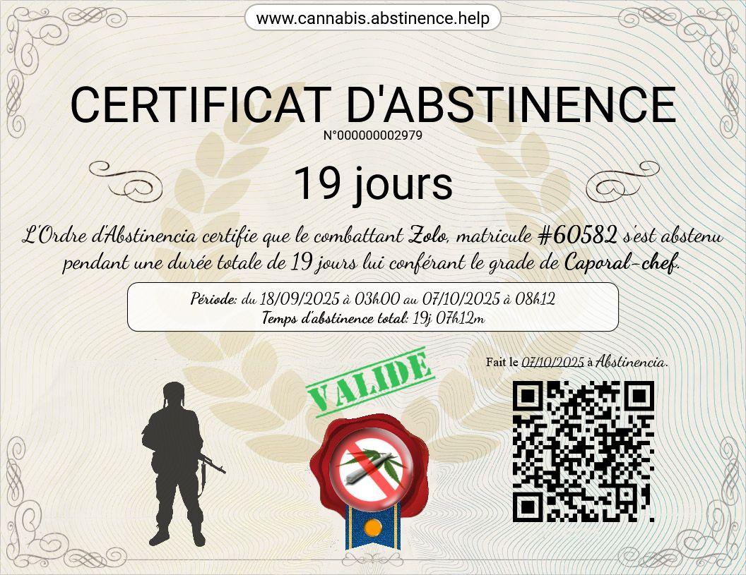 - J1 It's been two months. Breakdown in the evening but I don't consider it a relapse. I point again for the symbolism!Started on 18/09/2025 à 03h00New rank achieved: RecrueGoal set: 21 days